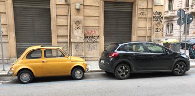 „Fremder, kommst Du nach Turin mit eigenem Auto, und dein Hotel verspricht dir einen Parkplatz - eine Lüge.“ Es gibt kaum ein Hotel mit Parkplatzangebot. Es gibt öffentliche Untergrundparkhäuser, die Stellplätze anbieten in einer Größe, daß man sich mit einem Alfasud Sprint (wahrlich kein großes Auto) entscheiden muss zwischen Parken und Aussteigen. Beides gleichzeitig ist schwierig.
