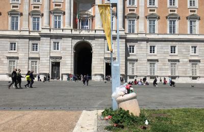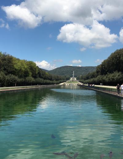 Danach fuhren wir zum Palast von Caserta, eines der grössten Schlösser Europas. Dieser barocke Palast wurde als Residenz der Bourbonen während deren Herrschaft über die Königreiche Neapel und Sizilien errichtet. In der Grösse und Pracht dem Schloss von Versailles vergleichbar. Eine unglaubliche Menge an verbautem Stein und Marmor. Tausende Fenster und dahinter Pracht und Prunk. Im dahinter liegenden Park kann man ein Pferd totreiten.