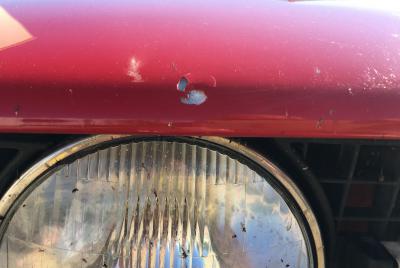 Auf der SS1 Aurelia vor Rom machte es einen Schlag. Uns traf ein von einem LKW aufgewirbelter Stein. Glücklicherweise traf er die Vorderkante der Motorhaube und nicht die Windschutzscheibe.